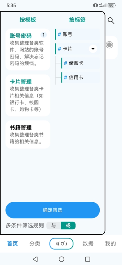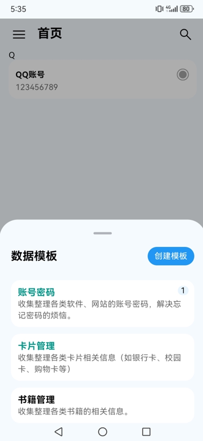 App拥有强大的数据自定义能力,您可以通过自定义数据模型,记录多种数据信息,如账号密码、储蓄卡信息、信用卡信息、人脉资源、书籍信息 等等数据类型。