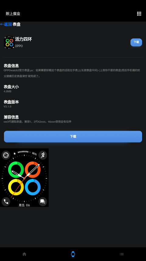 进入表盘详情页面,点击下载