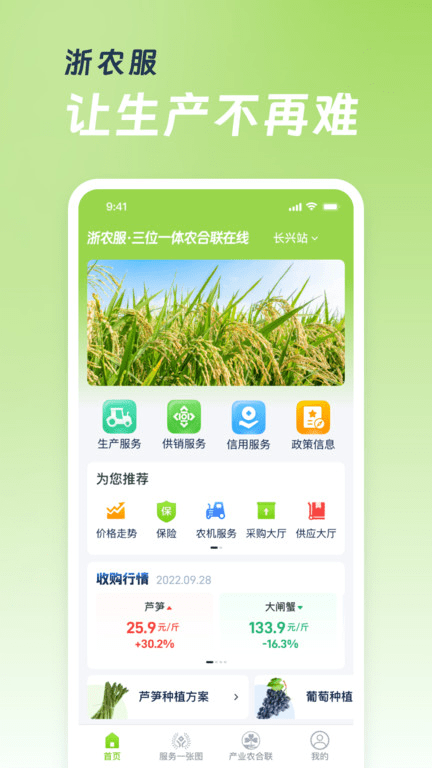 浙农服app官方版是一个针对农业生产打造的软件,通过数字化的服务来让相关的农户和农产品公司更好的运营,在app内包含了非常多的功能,大家可以在这里完成多样的服务,查看各种供销信息,各种农产品的每日价格等等,可以在线上进行交易。