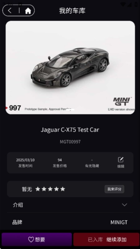 车仔助手不仅提供信息查询功能,还具备收藏管理的实用工具。用户可以在软件中记录自己的收藏情况,对车模进行分类管理,轻松追踪已拥有和想要收藏的模型,提升了管理效率。