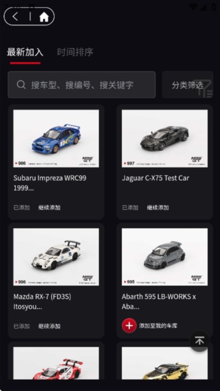 汽车模型的资料库将跟随市场数据进行不断更新,通过资料库查询,通过品类、编号等分类检索,快速定位自身收藏需求对应汽车小比例模型,查看其发售、价格、模型参数。