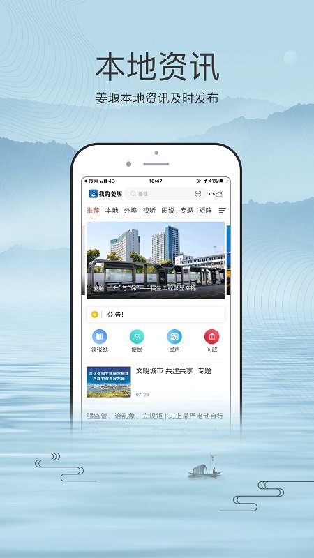 我的姜堰app是一款为本地人服务的资讯软件,还提供了一些便民的服务窗口,在这里大家可以在线观看相关的新闻内容,还可以查看本地的新闻点播等等,让大家可以了解到身边的大小事务,办理手续也桁架的方便了,让每个人都可以更切身感受到政务的便利。
