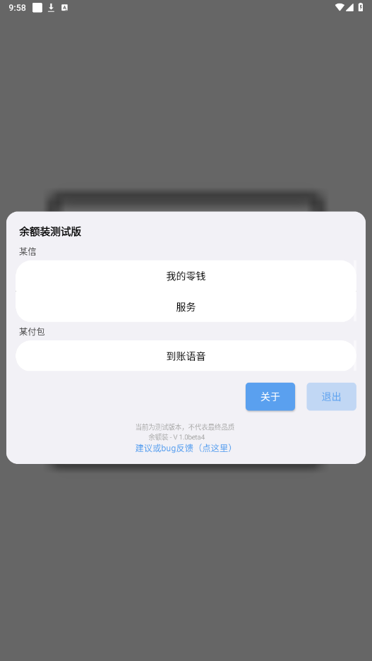 余额装App是一款趣味娱乐工具,可模拟余额、服务界面钱包金额以及支付宝到账语音效果,适用于社交娱乐、视频拍摄或朋友间互动整蛊。本软件仅供娱乐,不涉及真实资金操作,所有显示数据均为虚拟模拟,请勿用于欺诈或误导他人。