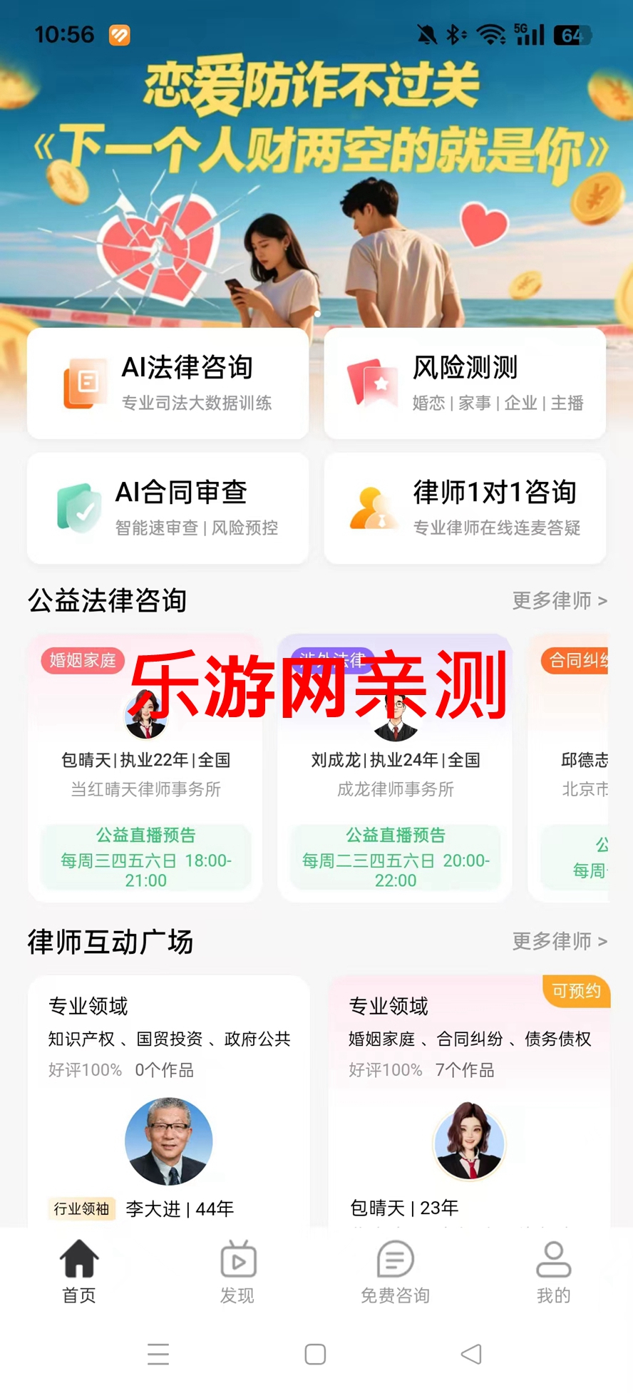 “风险测测”答题生成婚姻/创业等风险报告,用游戏化交互提前预警潜在法律危机。