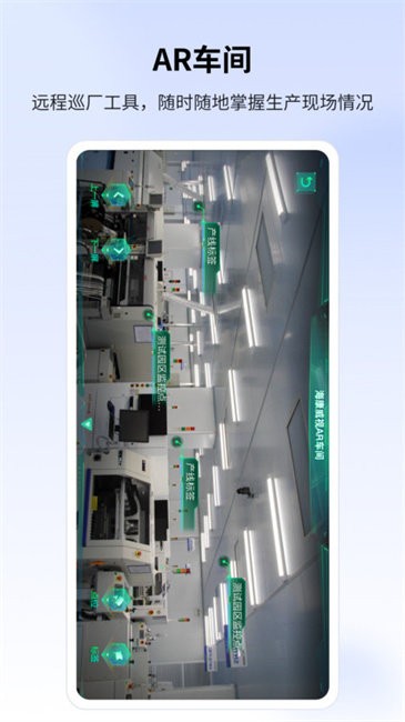 1、采用了AR增强现实技术,在安防视频基础上叠加生产数据、设备运行状态以及环境参数,形成一张完整的“AR车间图”。