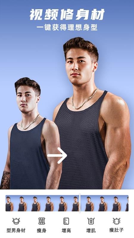1、智能化身材重塑技术,运用先进算法支持一键增肌、智能瘦身及腹肌添加,帮助用户轻松塑造理想体型。