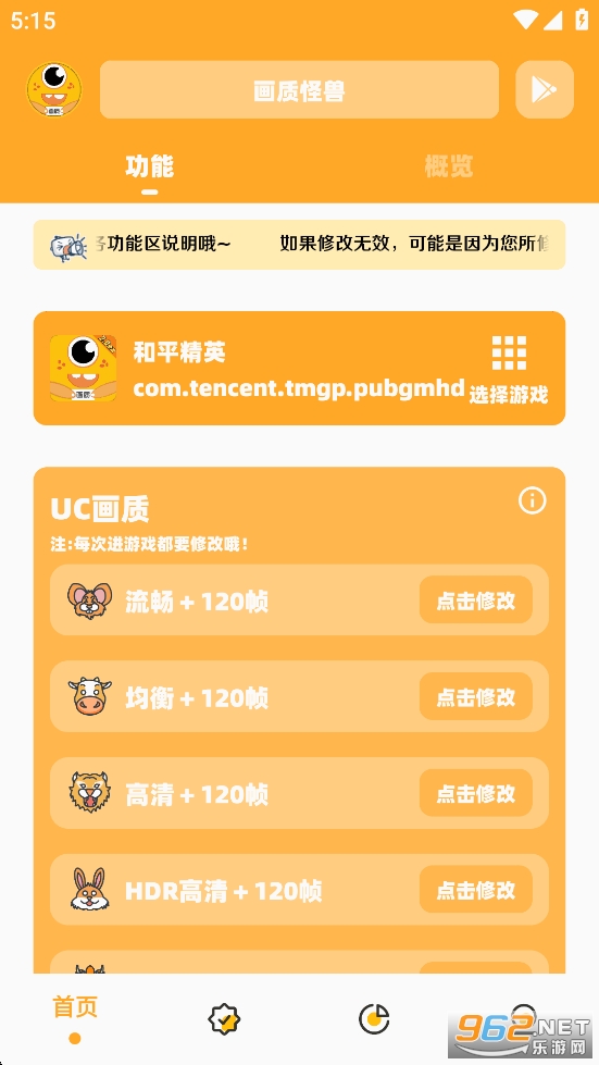 实用的画质助手,可以利用软件来修改各种游戏的画质,有着多种帧率可以选择,操作简单,一键修改,也可以使用软件来修改准星,使用语音包等,有需要的朋友可以下载试试。