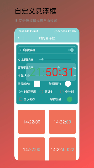 还可以把时间悬浮窗口显示,各种设置都可以在这里操作。