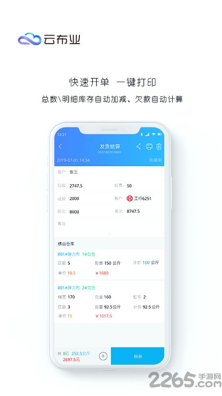 快速开单一键打印,总数明细库存自动加减、欠款自动计算
