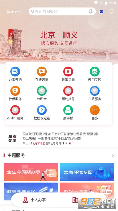 1.网上办事大厅:为顺义区居民、企业提供政务事项掌上办理服务,汇聚顺义区级和二十五个镇街的事项办理服务,并可以随时随地进行办事预约、查看办事指南、关注办事进度。