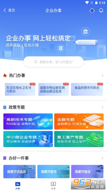 2.办好一件事:提供主题事项的移动端办理,目前已上线“我要开超市”、“我要开饭店”等八十项办好一件事主题服务。