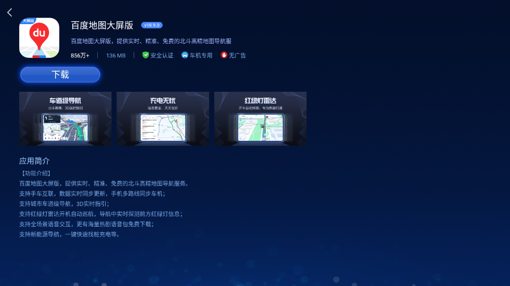 一款专为汽车打造的应用市场,类似手机上的安卓应用市场,只不过它内置中的软件更适合车载导航屏上运行,完美兼容各种型号车型导航,非常好用。软件功能十分全面强大,汇聚各种主流车机应用供用户选择,用户可以根据自己的喜爱来为爱车来配备相应的应用;并且其中的所有应用均经过真实车机实测,应用更新快,是国内最贴心的车载安卓应用市场。