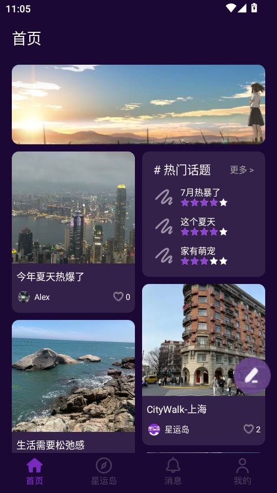星运岛app如何发表话题