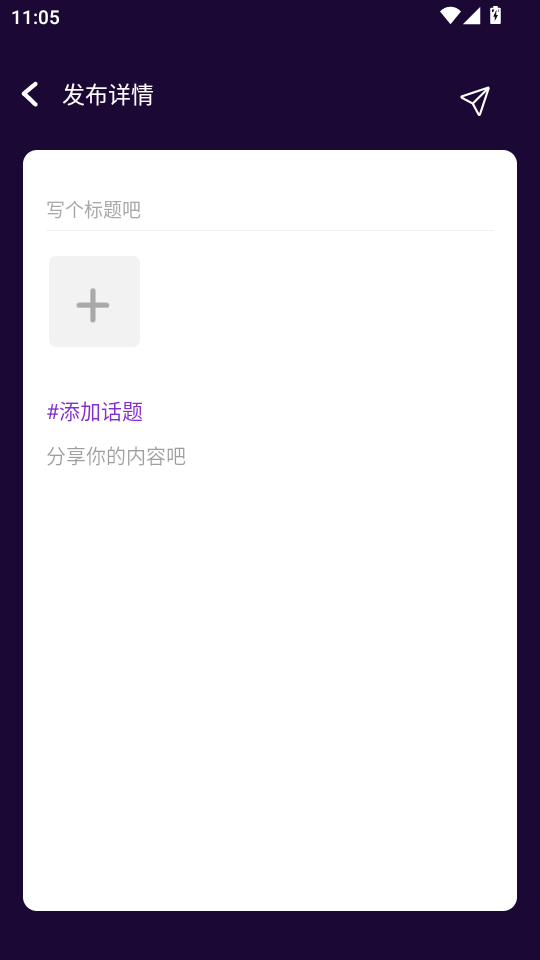 1、进入软件后,点击右边按钮,进入话题发表界面