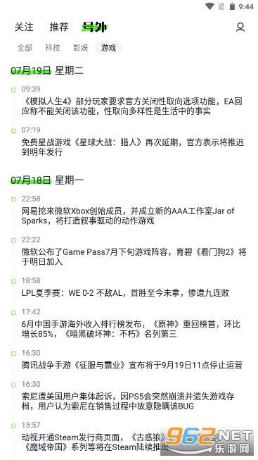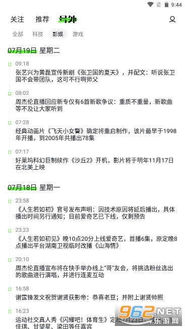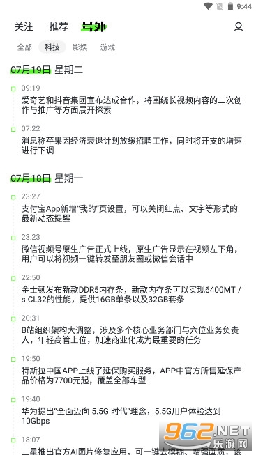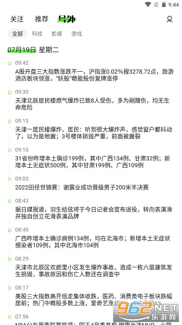 3、除了“推荐”外,“头条号外”还拥有“号外”功能,类似于实时快讯,会及时推送一些要闻动态,而且还细分出科技、影视、游戏等3个小模块。