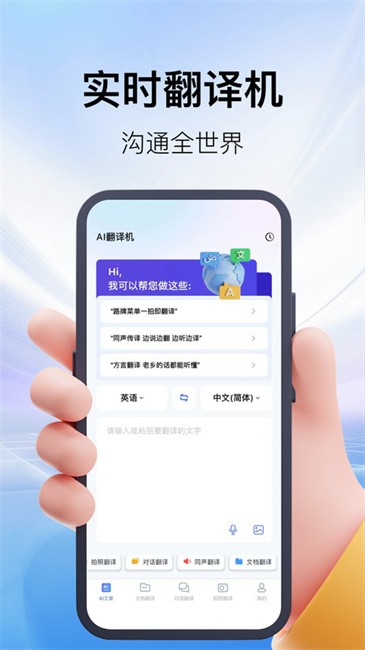 AI翻译机-金牌翻译。实时文本翻译、语音翻译、拍照翻译、同声翻译、图片翻译与屏幕翻译的 AI 驱动翻译软件。借助内置的多语言翻译工具,瞬间打破语言障碍,让多语言互动轻松自如。