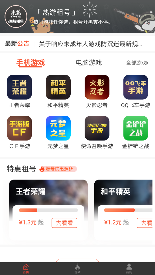 热游租号致力于让游戏热爱者体验感受高级虚拟物品带来的快乐,为广大玩家提供优质的手机游戏、电脑游戏、steam等游戏的租号借号服务,热门游戏任你选,租号开黑爽不停!