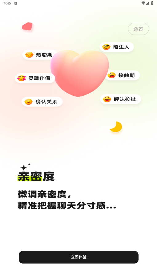 聊天亲密度设置:无论是对陌生人还是灵魂伴侣,都可以设置亲密度,帮助用户把握聊天分寸,增加了使用的安全性。