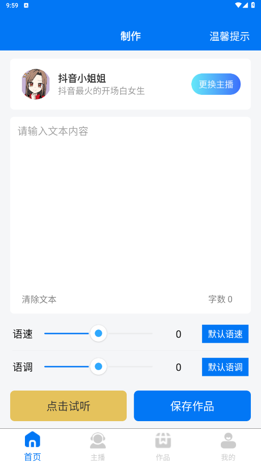 赤拳配音是一款热门配音软件,里面包含了多位热门AI主播声音,采用强大的语音合成技术,打造简单便捷的配音服务平台,输入文字一键导出,满足您的各方面视频配音、文字转语音等需求。