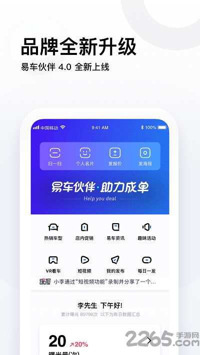 易车伙伴最新版本是为汽车销售顾问设计的专业营销工具,通过app,销售顾问可以及时地和2265客户进行线上沟通,同时通过丰富的营销方式提升营销业绩。