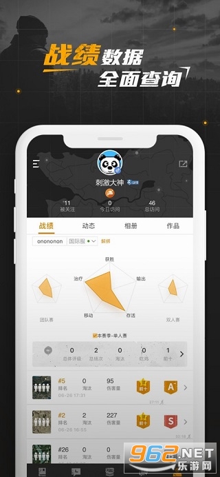 个人战绩一键查询,个人生涯总局数、杀敌数、总体评级等多纬度数据将助您全面了解自己的战斗数据。