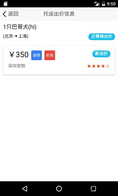 5. 免费发布宠物托运需要,等待宠物托运公司出价通知。