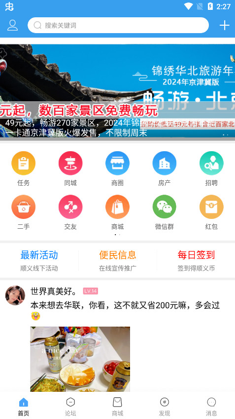 顺义在线网官方手机客户端,能够实现、浏览、发贴、上传图片、语音等功能,是顺义人自己的手机APP。