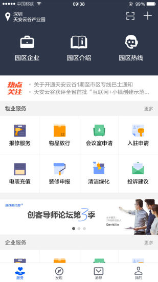 物业:利用CC+打开创新的物业管理模式,提供丰富的增值服务,线上线下一体化提高用户体验与服务效率;