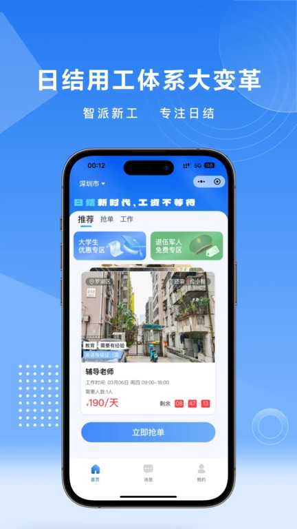 智派新工手机版体验日结新时代,赚钱不等待,每一滴汗水都值得,轻松上岗,日结无忧,我们为用户提供灵活高效的工作机会,工作收入当天结算,安全可靠,省时省力,支持多种职位选择,实时更新岗位信息,随时随地轻松赚钱,立即下载,享受无缝对接的求职体验,开启你的灵活工作生活!