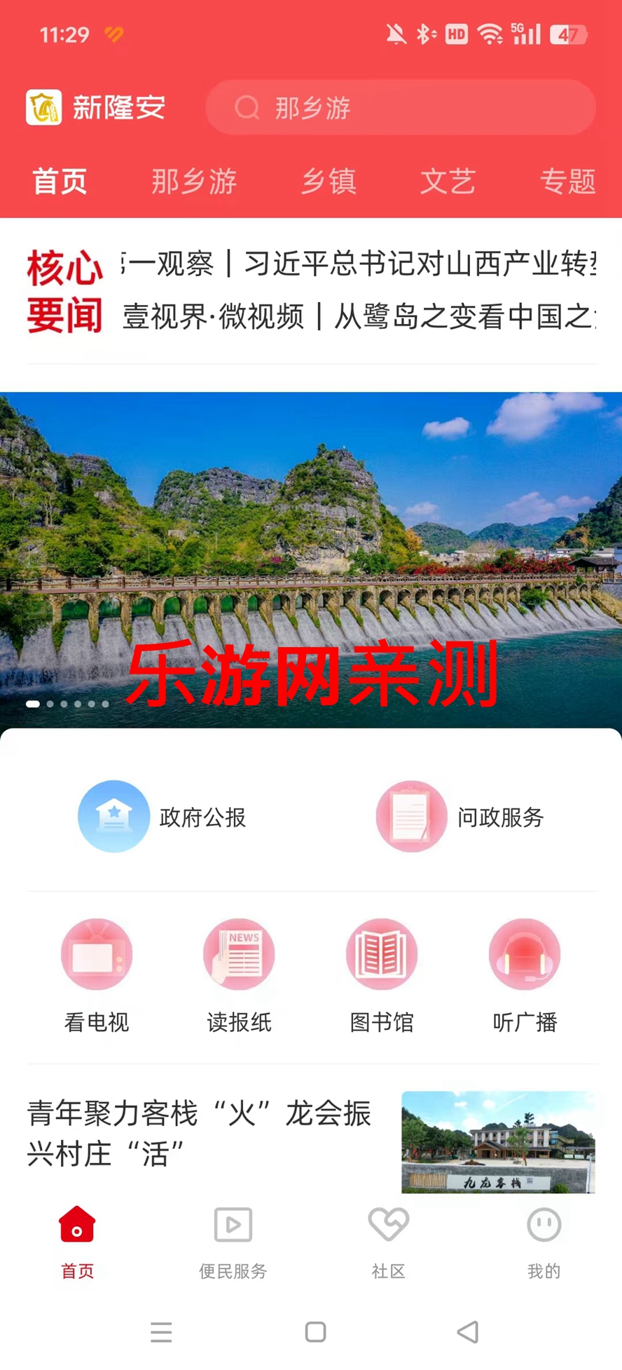 顶部导航栏设有多个特色板块,轻松一键即可畅游“那乡游“研学之旅、掌握各乡镇最新动态、品味隆安文艺等丰富多彩本土内容。