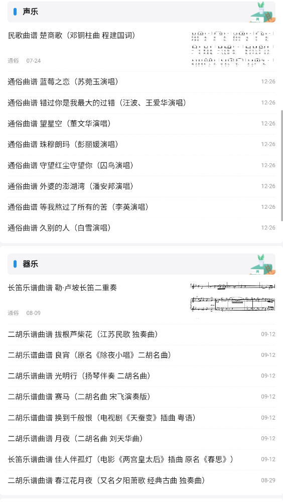 智能推荐:根据用户的浏览和搜索记录,智能推荐相关曲谱,提升用户体验。