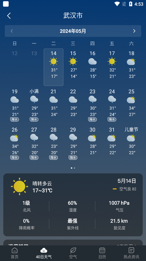 天气背景随天气情况变化,给你一目了然的天气信息;