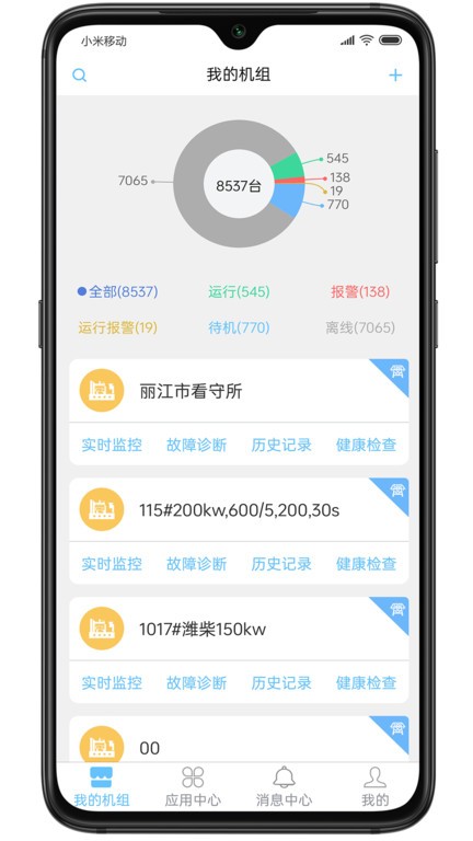 一个为发电机组提供健康监测和维保服务的云平台APP,发电机组通过硬件连接到云平台服务器,通过采集器机组运行的数据和实施状态,分析机组的潜在故障,让用户及时做好维护保养工作,让发电机组也享受着健康生活。