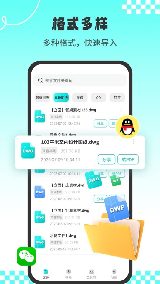 一键同步,云存储实现图纸三端同步,支持、QQ传图;