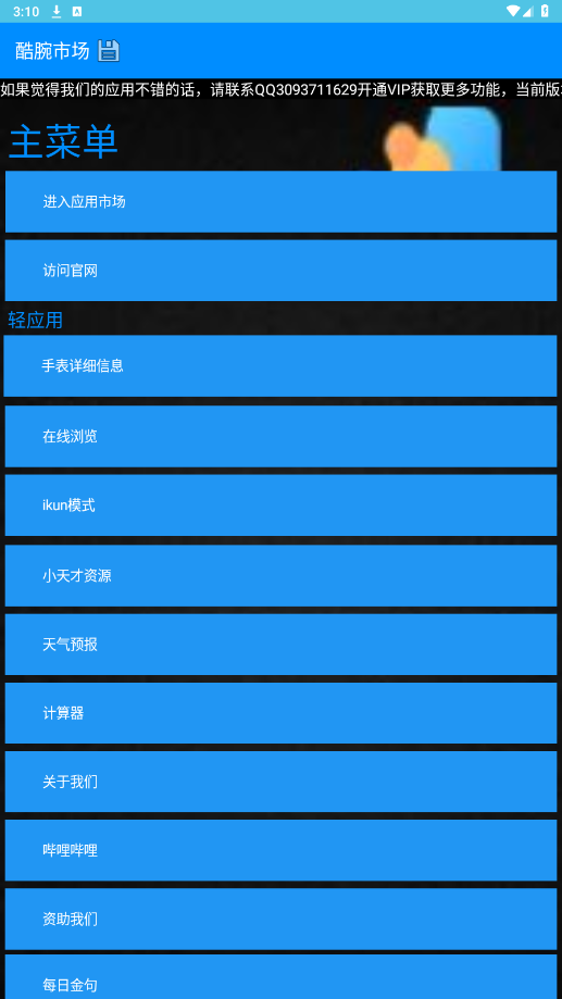 2.首页设计简洁清无广告,主要分为【主菜单】和【轻应用】两个板块