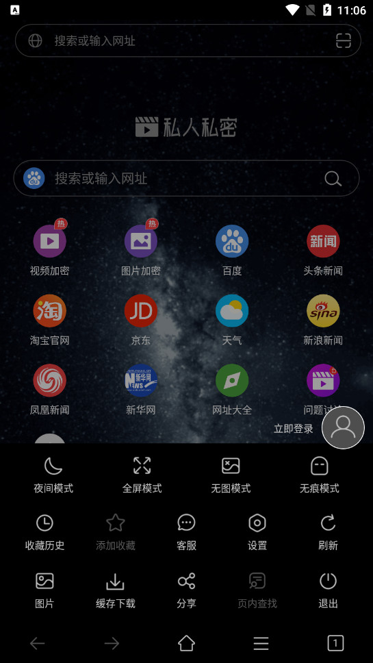《私人私密浏览器》是一款注重隐私保护的浏览器,有许多个性化选项可按喜好调整,支持无痕浏览、广告屏蔽和夜间模式,安装包小巧省流量,能保护私密下载内容,可调整网页画质,提供特供网址导航。搭配个性化功能和实用工具,营造安全舒适的浏览环境,适合重视隐私的用户日常使用。