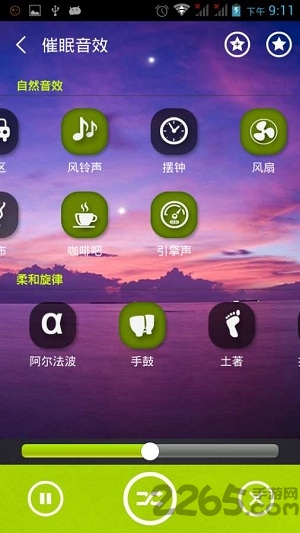 能让你在非常放松的状态下进入睡眠,也可以在最自然的环境中把沉睡的你唤醒。给你更好的心情,让你的睡眠更容易也更轻松,它使用很简单,播放平和的轻柔的声音,夹杂著大自然的声音效果和非常优美的旋律伴你入眠。