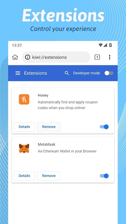 猕猴桃浏览器kiwiBrowser虽说是手机端的浏览器,但是其内置竟然是谷歌浏览器的内核,操作方面几乎和电脑端的谷歌浏览器一样!支持各种好用的浏览器插件功能,相信大家在使用过后,一定会喜欢上它!