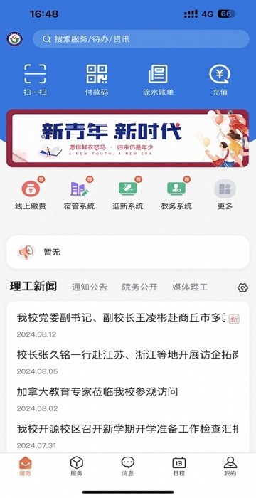 我爱理工App目前已接入教务系统,迎新系统,线上缴费,宿管系统,云保修综合服务平台,图书馆预约借阅查询等,可实现各个系统及功能服务单点进入页面办理日常事务。
