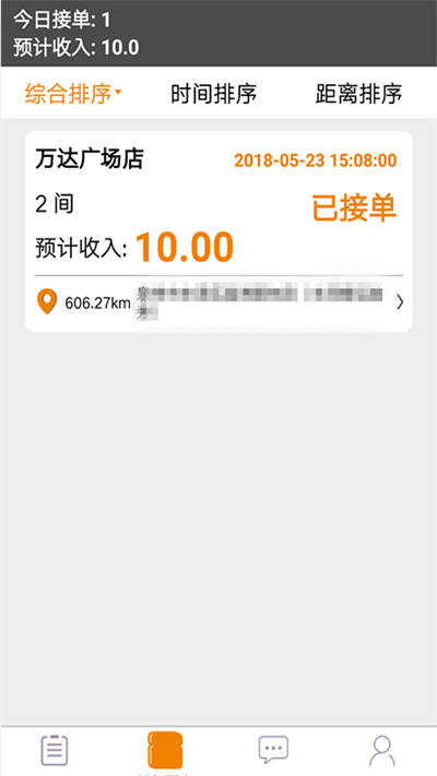 订单同步更新,各个酒店发布的打扫订单能够同步到打扫人员终端;