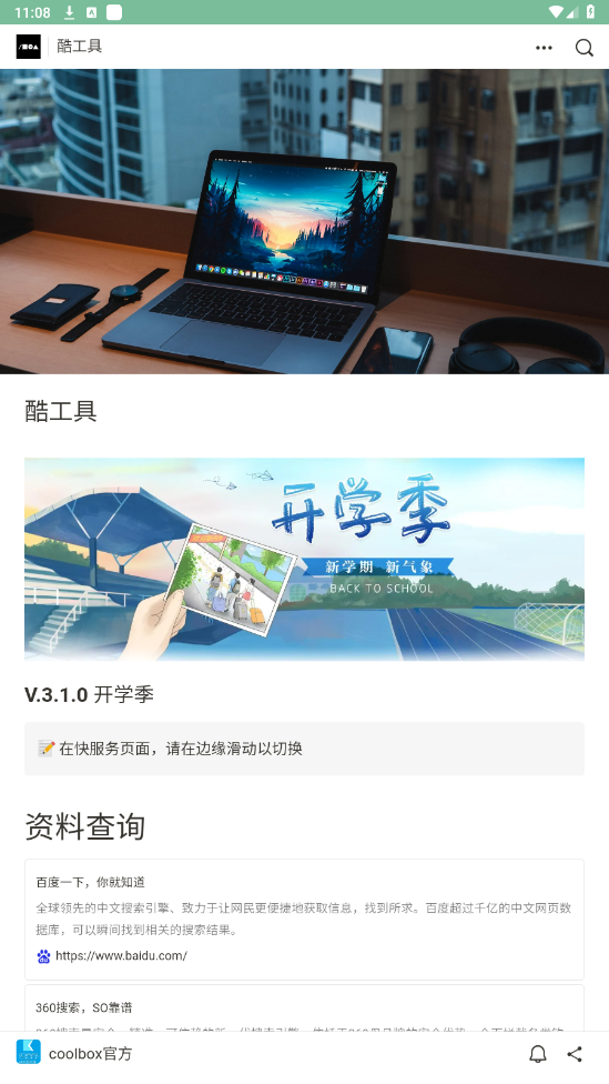 2.随时随地在线使用各种工具箱功能,包括百度搜索和娱乐游戏等。