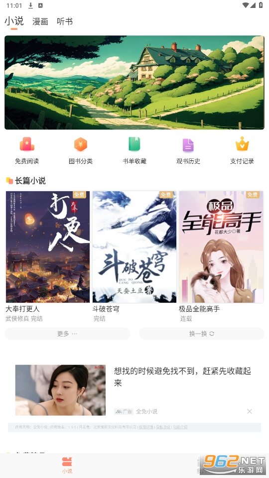 2、小说大全:包括热门网络文学、高分豆瓣作品和畅销榜图书,应有尽有