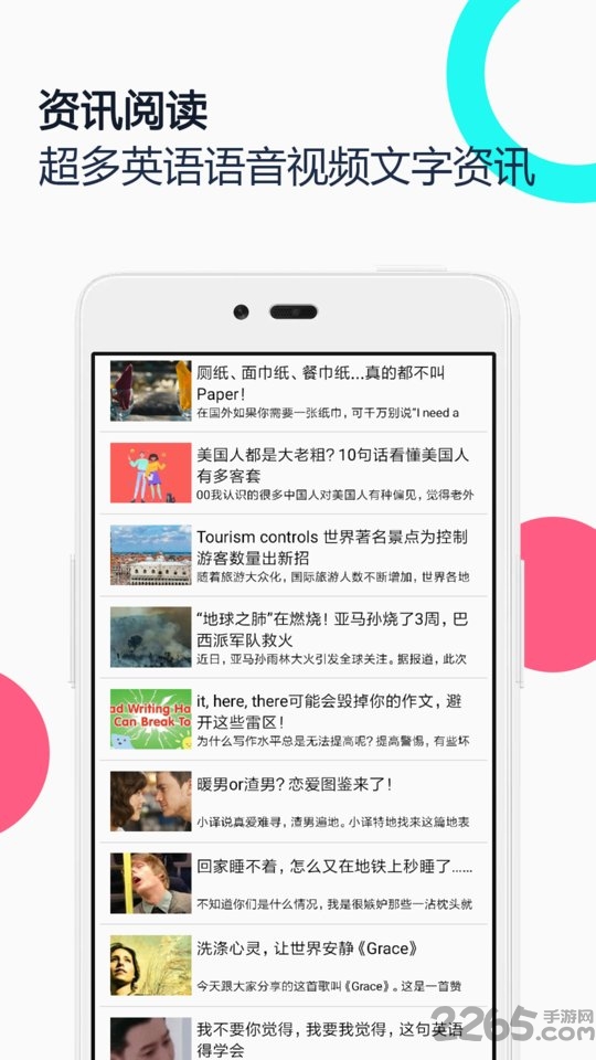 2、资讯阅读:每天更新精选2265双语文章,各种栏目带你轻松涨知识