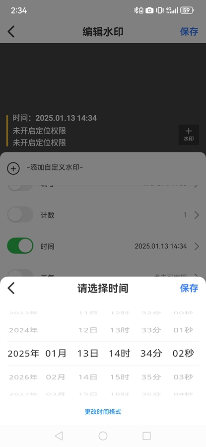 该APP允许用户自由修改水印中的时间和地点信息。用户可以根据自己的需要,手动输入正确的时间或地点,或者从预设的选项中选择合适的时间格式和地点名称。软件还提供了多种水印样式,包括时间地点固定打卡、宝宝出生天数、工程记录、执勤记录等多种场景。用户可以根据自己的需求和喜好,选择合适的水印样式进行添加。