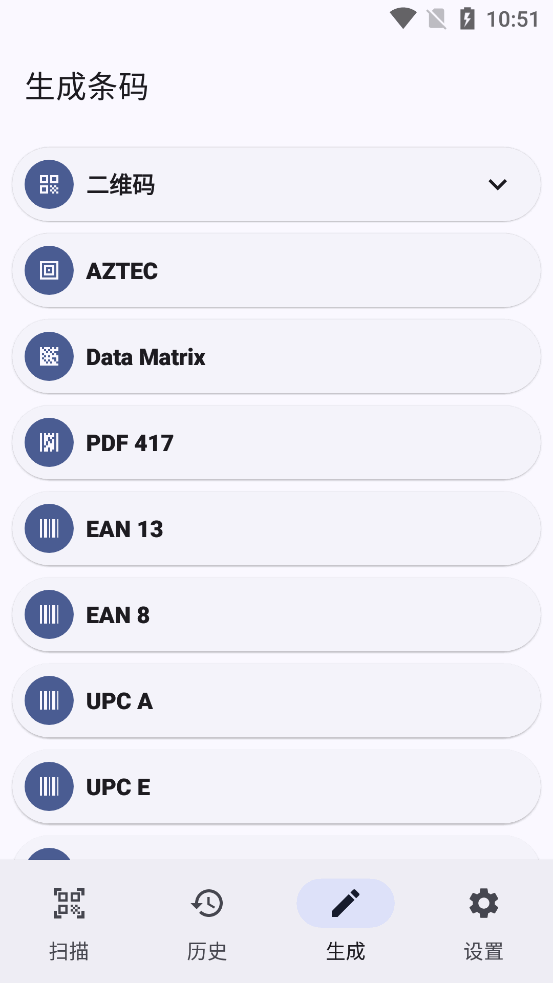 该应用管理了不同格式的条码: