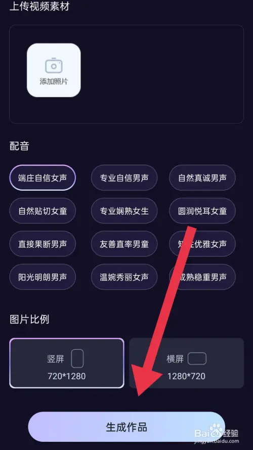 选择好配音与图片比例,点击“生成作品”,即可一键生成影视解说。