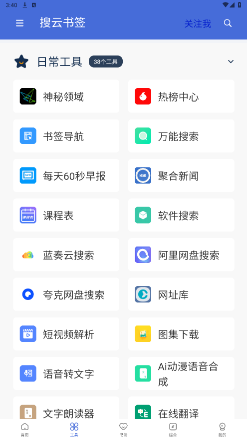 工具箱集成:搜云书签内置了多种实用工具,如计算器、记事本、翻译等,满足用户在日常生活中的多种需求。