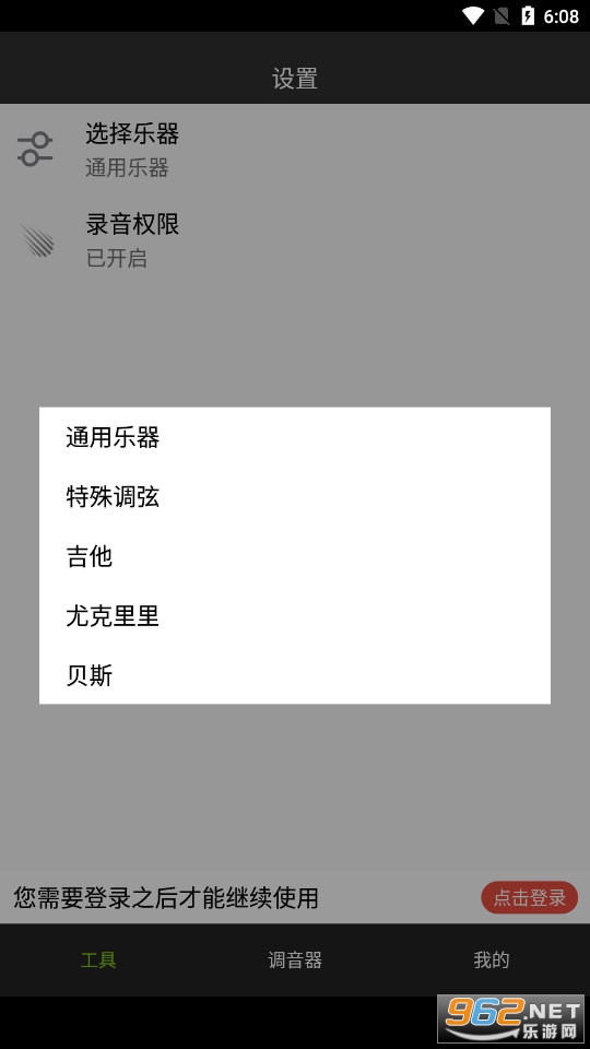 4、主要用于音准的矫正,支持Guitar、Violin等主流乐器的调弦