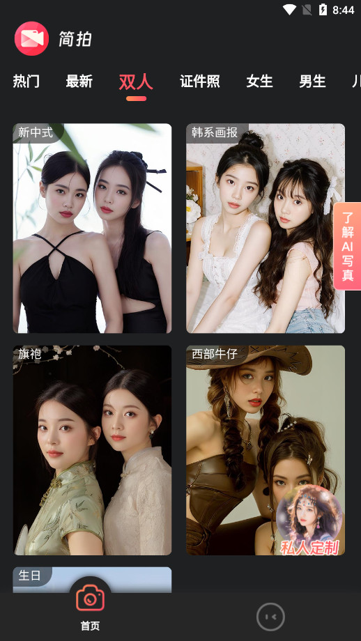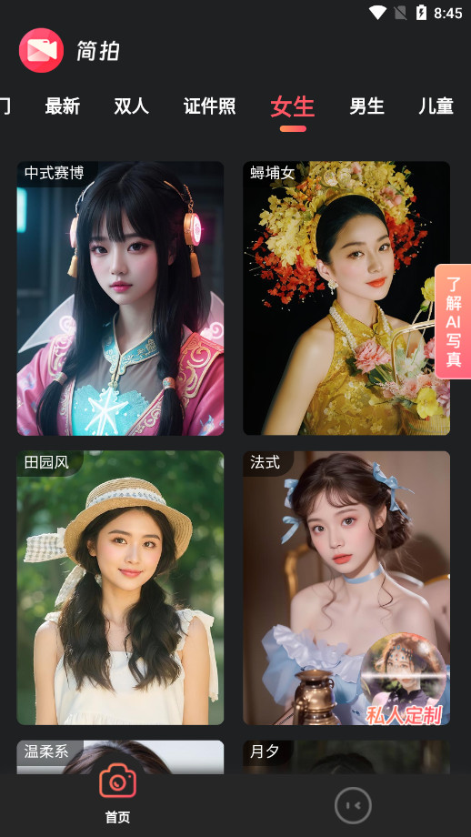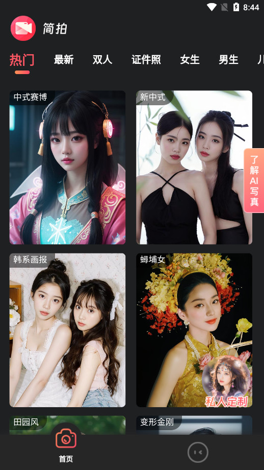 简拍是一款线上艺术照app,居家即可拍摄专业质感的大片,让你无需前往实体照相馆,在家即可体验专业的艺术照拍摄,轻松获得相馆级体验。