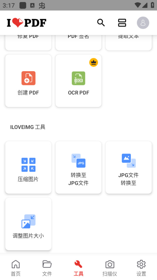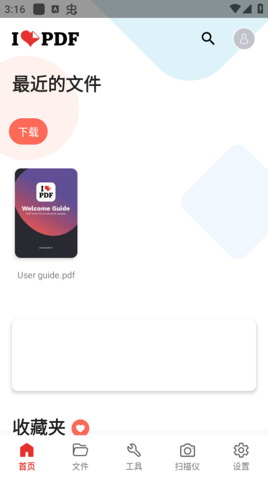 1.下载并打开ilovepdf app,点击【设置】